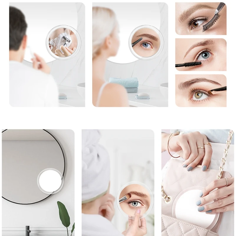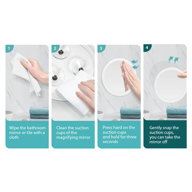 [Easy to Use and Portable Mirror] - This magnifying mirror has suction cups that can be attached to mirrors, tile surfaces, simple and solid installation. Can be repeatedly disassembled, and can be easily carried outside.