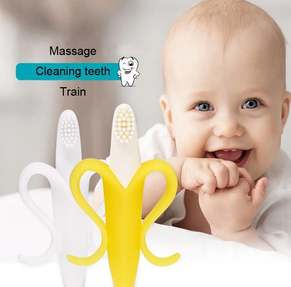 Baby Silicone Training Toothbrush BPA Free Banana Shape Safe Toddle Teether Chew Toys Teething Ring Gift For Infant Baby Chewing
