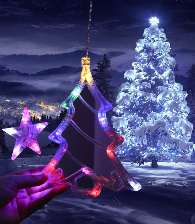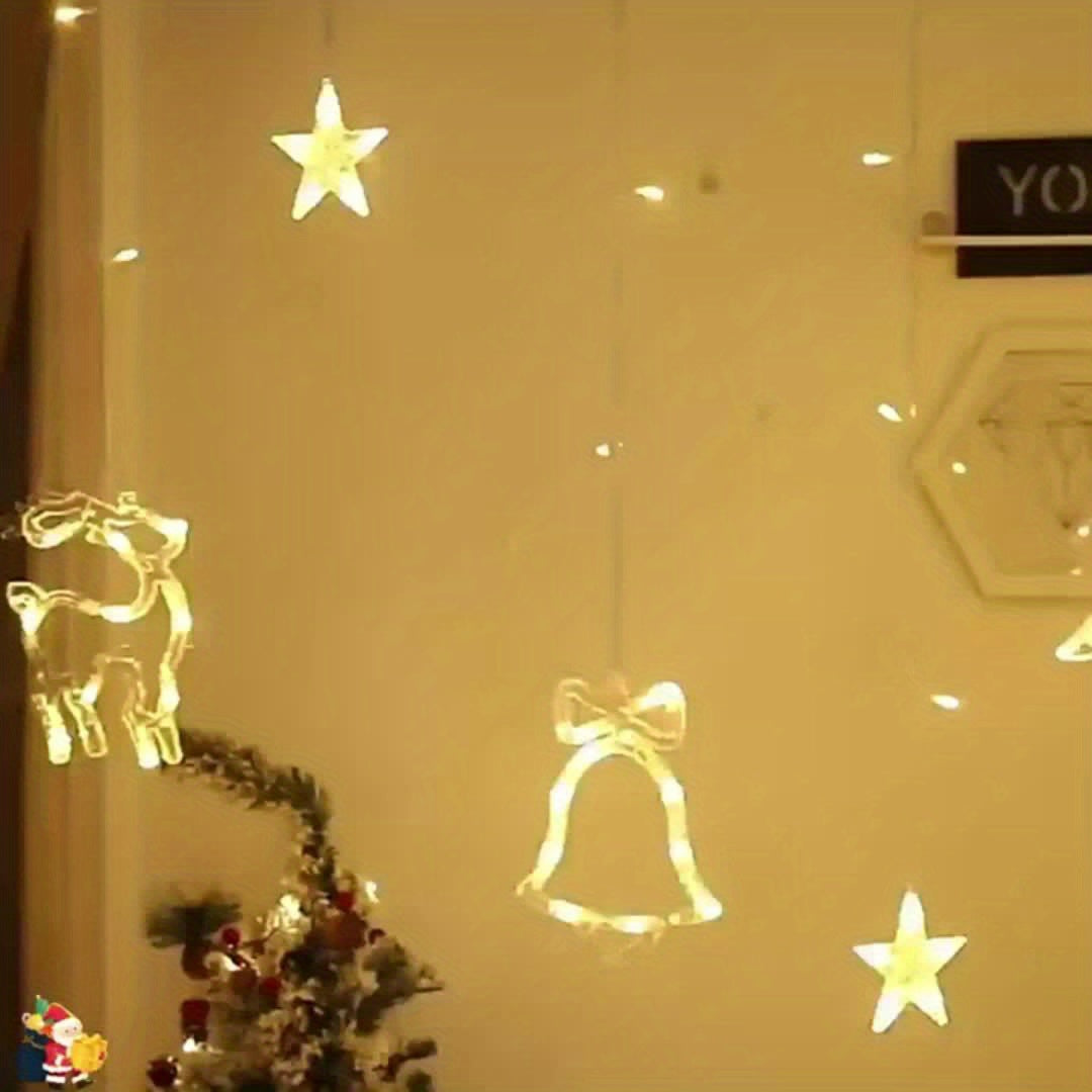 LED 11.5ft USB Powered Curtain Light Christmas Tree, Reindeer, Bells Curtain Lights for Christmas Wedding Party Bedroom Decoration, Warm White