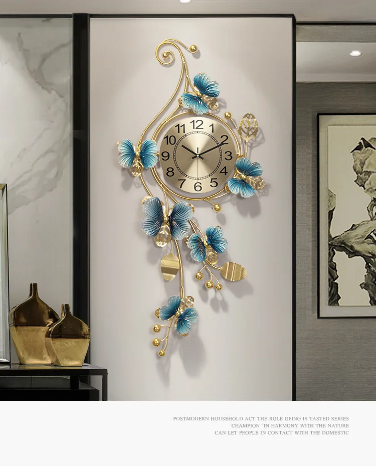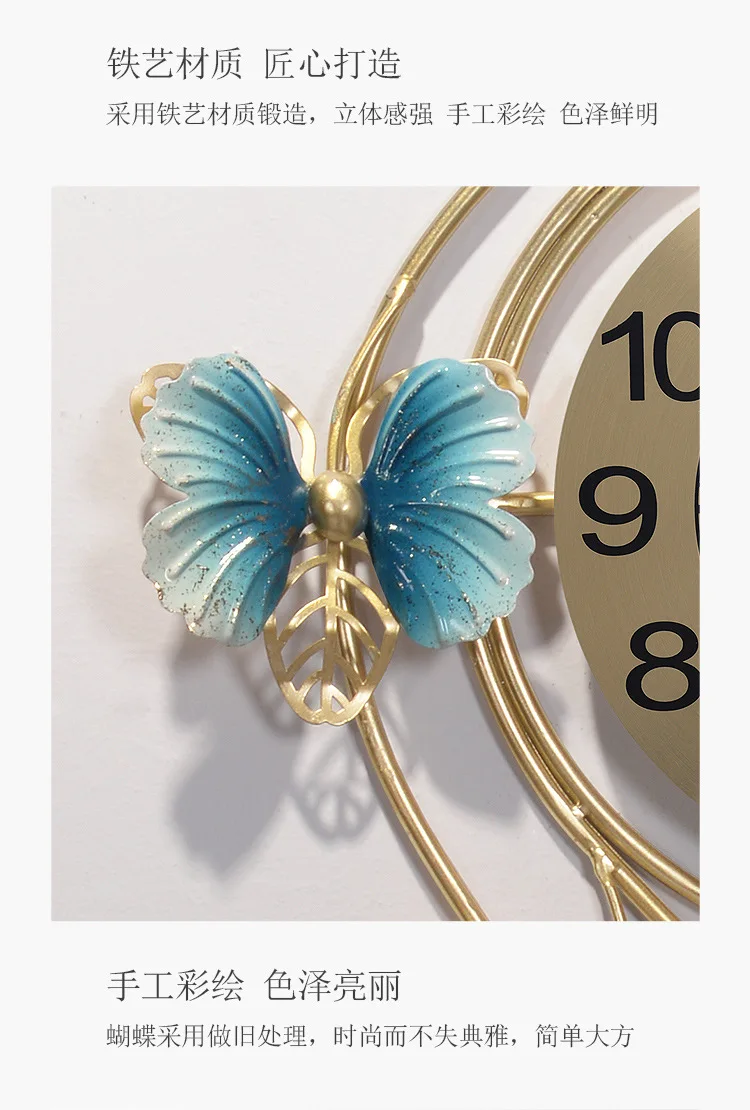 Metal Butterfly Wall Clock Home Fashion Creative Decoration Clock Silent Sweep Seconds Quartz Watch Personality Wall Watchs