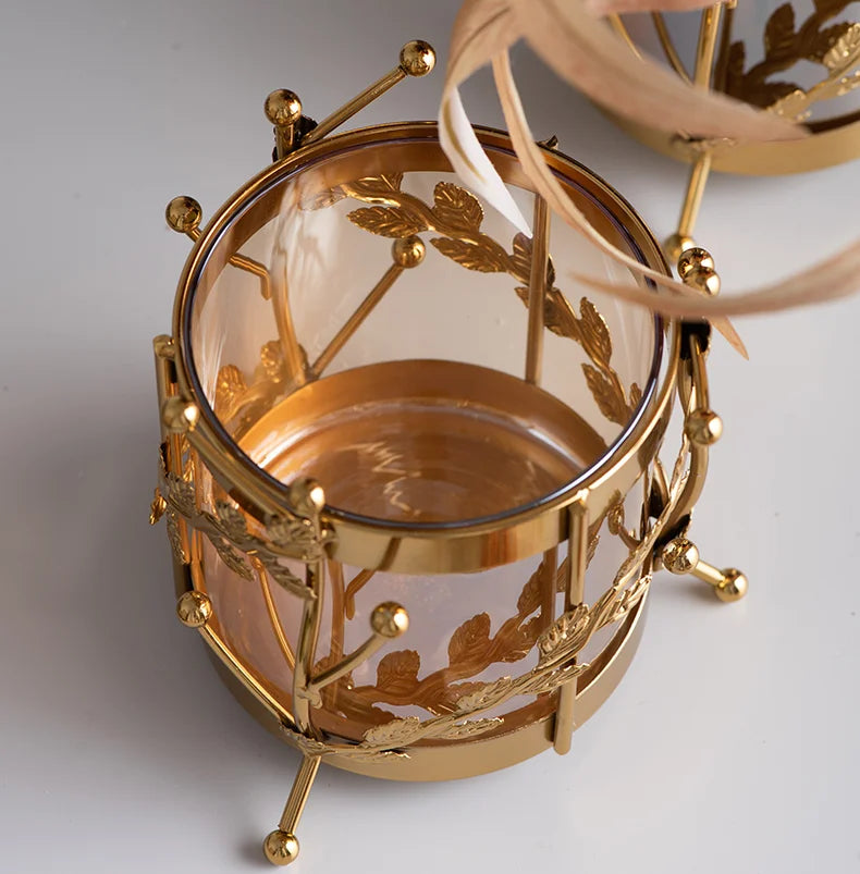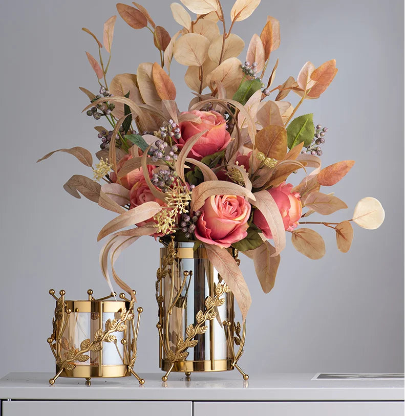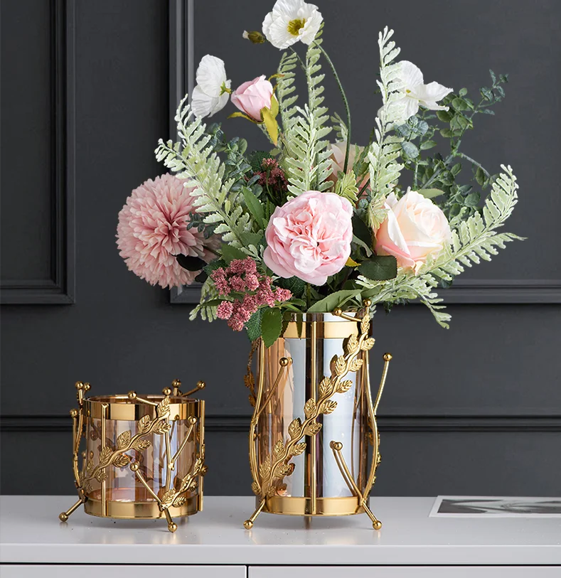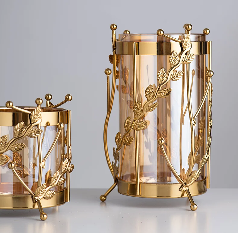 Metal Glassflower Vase Golden Hollow Frame Hydroponic Flower Arrangement Home Decoration Multifunctional Candle Holder