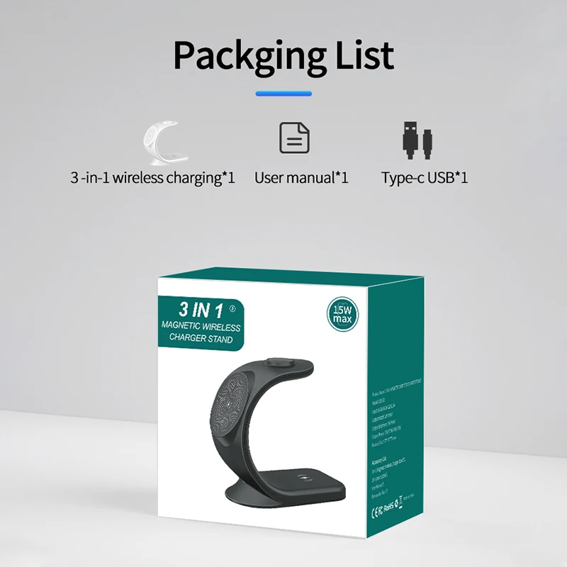 New Magnetic 3 in 1 Wireless Charger for Smart Phone/12 5-15W Wireless Charging Station for Watch/Earphones Phone Holder/Bracket