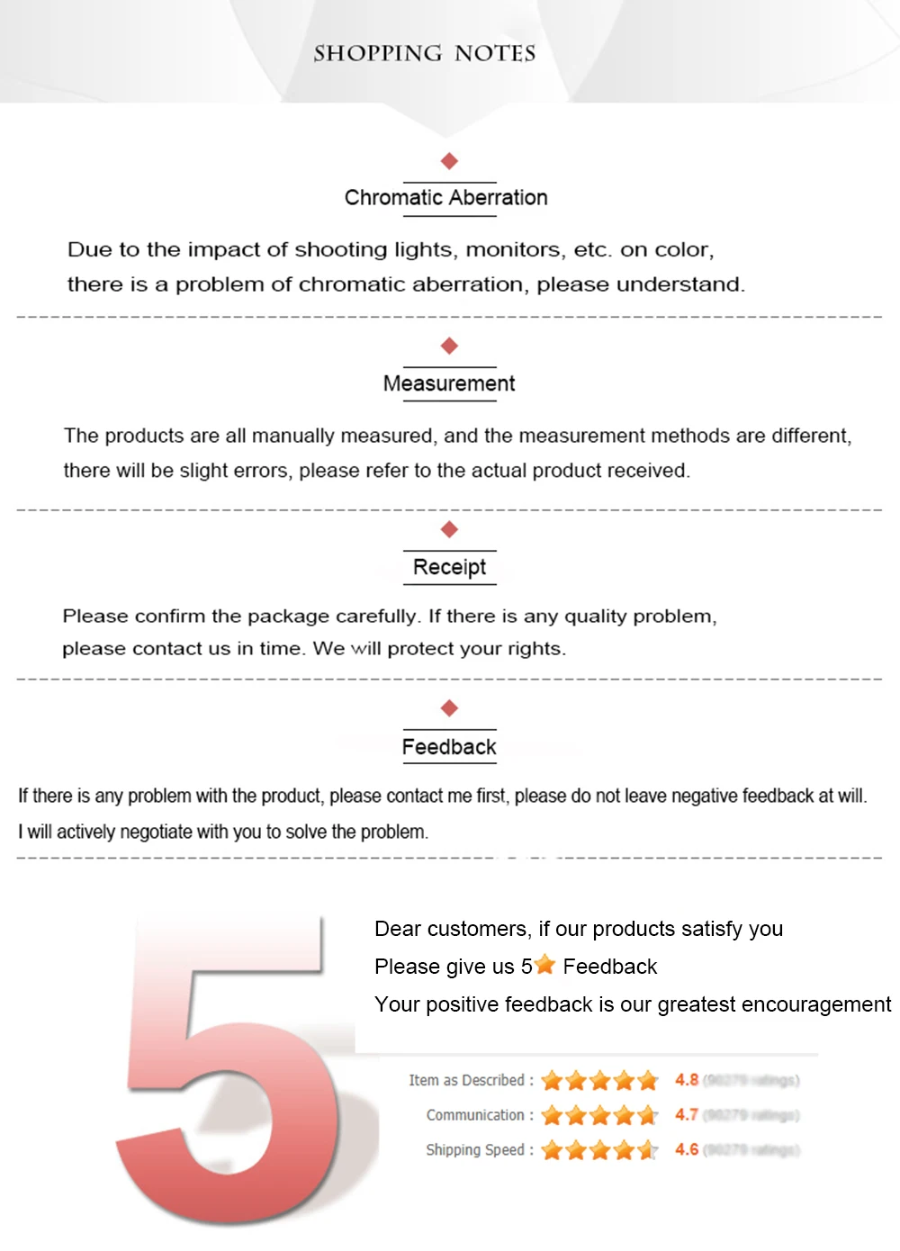 1. If you like our products, you will be very grateful for your five-star feedback, which will be of great help to us.