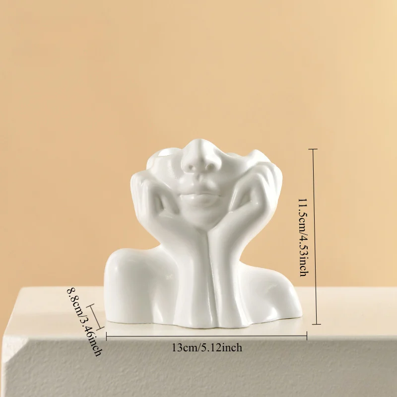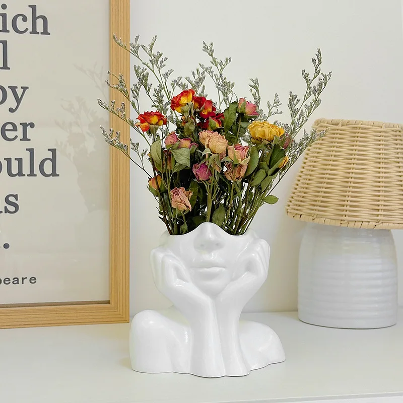 Resin Face Vase - Multifunctional Makeup Brush Holder & Pen Organizer, Minimalist Dried Floral Arrangement with Storage
