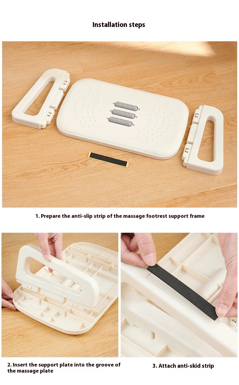 This footrest can be easily installed under your desk, ensuring a neat and tidy workspace while providing necessary support.