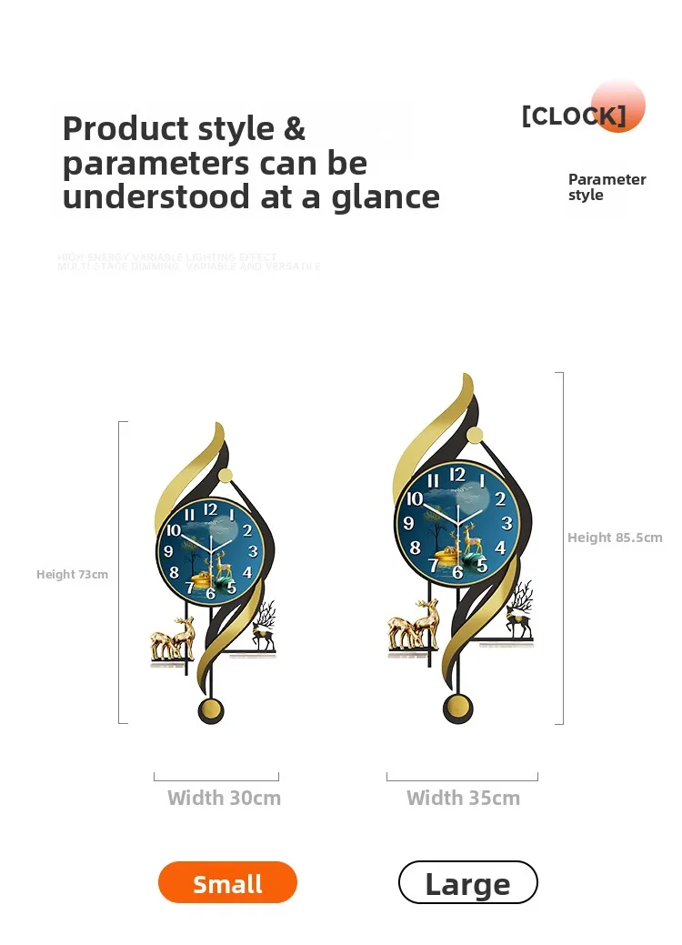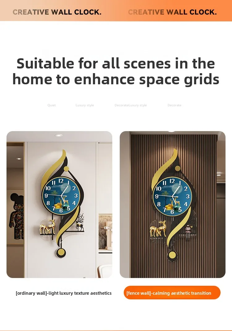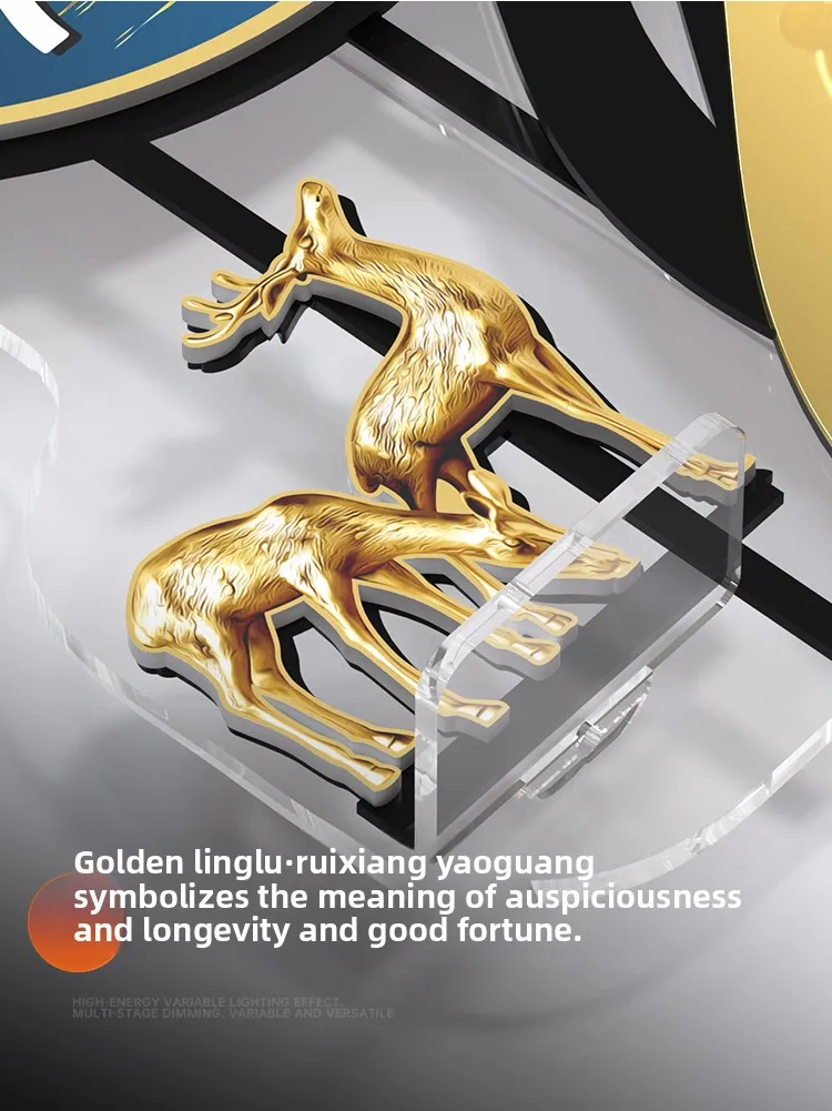 Description: Wall clock, after 1200 hours of testing, the golden spirit deer symbolizes auspiciousness, longevity, and good fortune. Paired with a grille background, it will produce a more stunning decorative effect