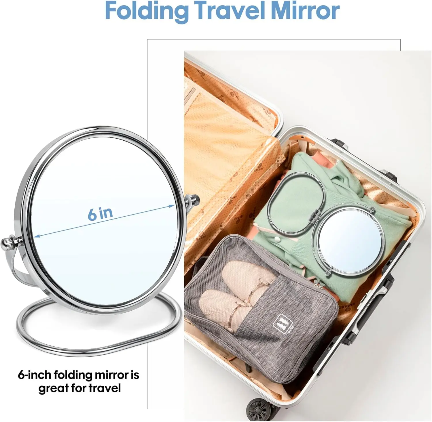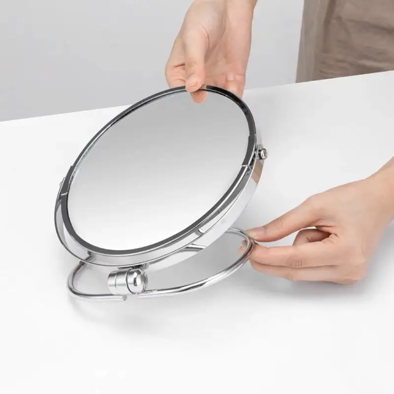 Two-Sided Makeup Mirror with Stand 1X and 10X Dual Sided Magnification Light weight&Portable Table Top Magnifying Vanity Mirror