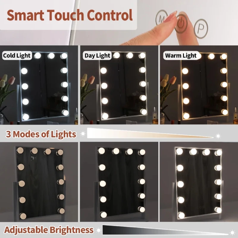 ★Vanity Mirror With Lights:13pcs dimmable Led bulbs,with nature and bright lighting,perfect for make-up mirror.