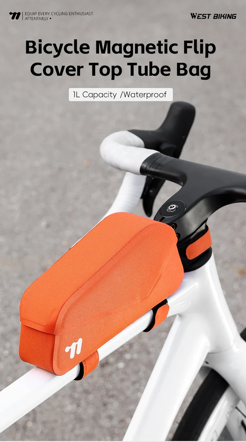 WEST BIKING Waterproof Bicycle Top Tube Bag Lightweight Bike Frame Pack Durable Cycling Storage Bag for Mountain and Road Bikes